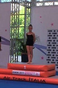 Adele… la piccola-grande Adele, è 1^ al nastro! conquista il primo titolo Nazionale! Campionessa Italiana A2 al Nastro, nella D3!!! e, visto che ci siamo, è 5^ alle clavette. Il sogno si è avverato.