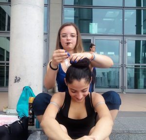 Lunedì 26 – Ecco, sono pronte per le finali. Solo le prime 10 di ogni categoria. Le nostre ginnaste si meritano un grande appaluso già per essere arrivate fino lì. Ma le soddisfazioni continuano. Nella mattinata gareggiano Giada, che si colloca all’8^ posto alla fune, e Sofia, che scende in pedana con fune, cerchio e palla, e proprio con la palla raggiunge un brillantissimo 5° posto!