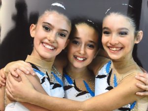 Ecco quindi le nostre presentarsi, sorridenti e decise, per l’esercizio collettivo al corpo libero, frizzante e pieno di brio.