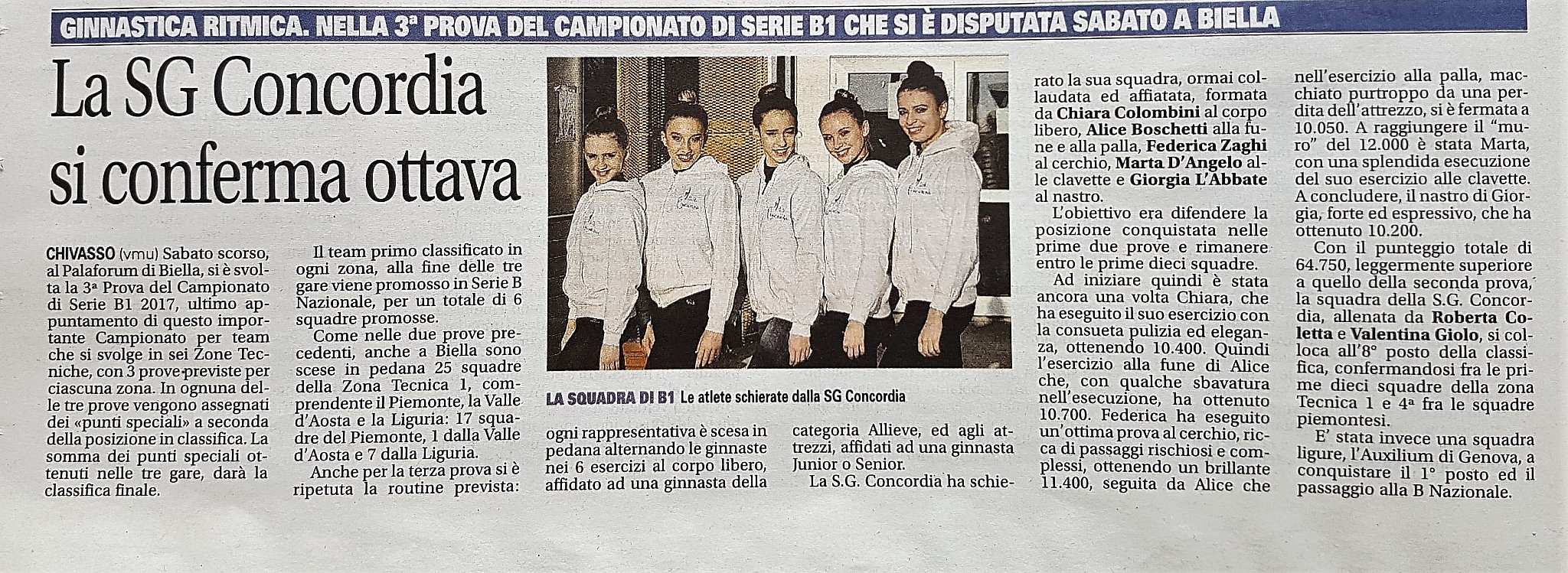 E siamo arrivati alla conclusione del Campionato di Serie B1 2017. Domani, al Palaforum di Biella, si svolgerà la terza ed ultima prova, al termine della quale, con una selezione severissima, solo la 1^ classificata conquisterà il pass per la Serie B del 2018. La lotta per questo obiettivo sarà quindi ristretta alle prime in classifica. Le nostre Alice, Chiara, Federica, Giorgia e Marta scenderanno in pedana per cercare di confermare la 7^ posizione conquistata nelle prime due prove, e che le colloca fra le migliori squadre del Piemonte e
