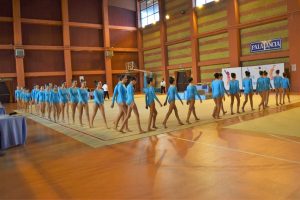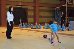 Ad iniziare, alle 14.00, sono state le più piccole, le bimbe del Baby Gym. Emozionate dall’ambiente, così grande in confronto a loro, “attaccate” prima alle mamme e poi alle loro allenatrici, qualcuna ha versato qualche lacrima, ma tutte  sono riuscite, chi con più disinvoltura, chi con un certo timore, a superare la prova preparata per loro, un “percorso” ginnico formato da una serie di passaggi obbligati tra gli attrezzi della ritmica, compiendo movimenti che costituiscono elementi di base di questa disciplina, utilizzando in modo ludico cerchi, nastri, palle, clavette e funi.