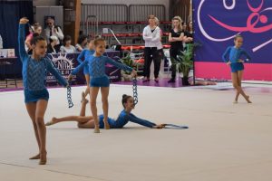 E invece la gara non va come si sperava… i nodi alle funi non si sciolgono, i lanci non vanno dove dovrebbero…. insomma, come spesso capita nella ritmica, in quel brevissimo tempo sulla pedana gli errori si sommano e la Giuria, di alto profilo e quindi esigente come richiesto dalla competizione, tramortisce le piccole con un punteggio bassissimo…