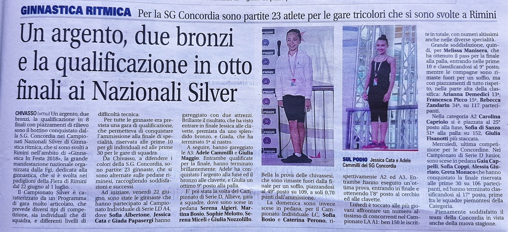 Eccoci arrivati alla pausa estiva! Dopo un anno di lavoro intenso, anche per le Concordine è arrivato il momento del relax e del divertimento! Gli allenamenti del settore agonistico riprenderanno a fine agosto, mentre i Corsi di Base inizieranno a fine settembre: stesso posto, stessa ora! Qui di seguito trovate i giorni di inizio di tutti i Corsi delle diverse sedi. GASSINO-CASTIGLIONE - Per tutti i corsi inizio: LUNEDI' 17 SETTEMBRE CALUSO - 1° - 2° - 3° Livello: GIOVEDI' 20 SETTEMBRE ; Baby Gym: LUNEDI' 24 SETTEMBRE SETTIMO - 1° e