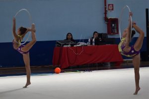 Nell’esercizio in successione scendono in pedana Giulia con la palla e Adele alla fune, che fanno una buona prova.