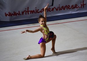 Quindi scendono in pedana, per l’esercizio in successione, Elisabetta e Giorgia, con palla e cerchio. Sono convinte, precise, danno vita ad una bellissima prova, senza sbavature, che viene premiata dalla Giuria con un brillantissimo 12.050,  il punteggio più alto della giornata in questi attrezzi, nella A3.
