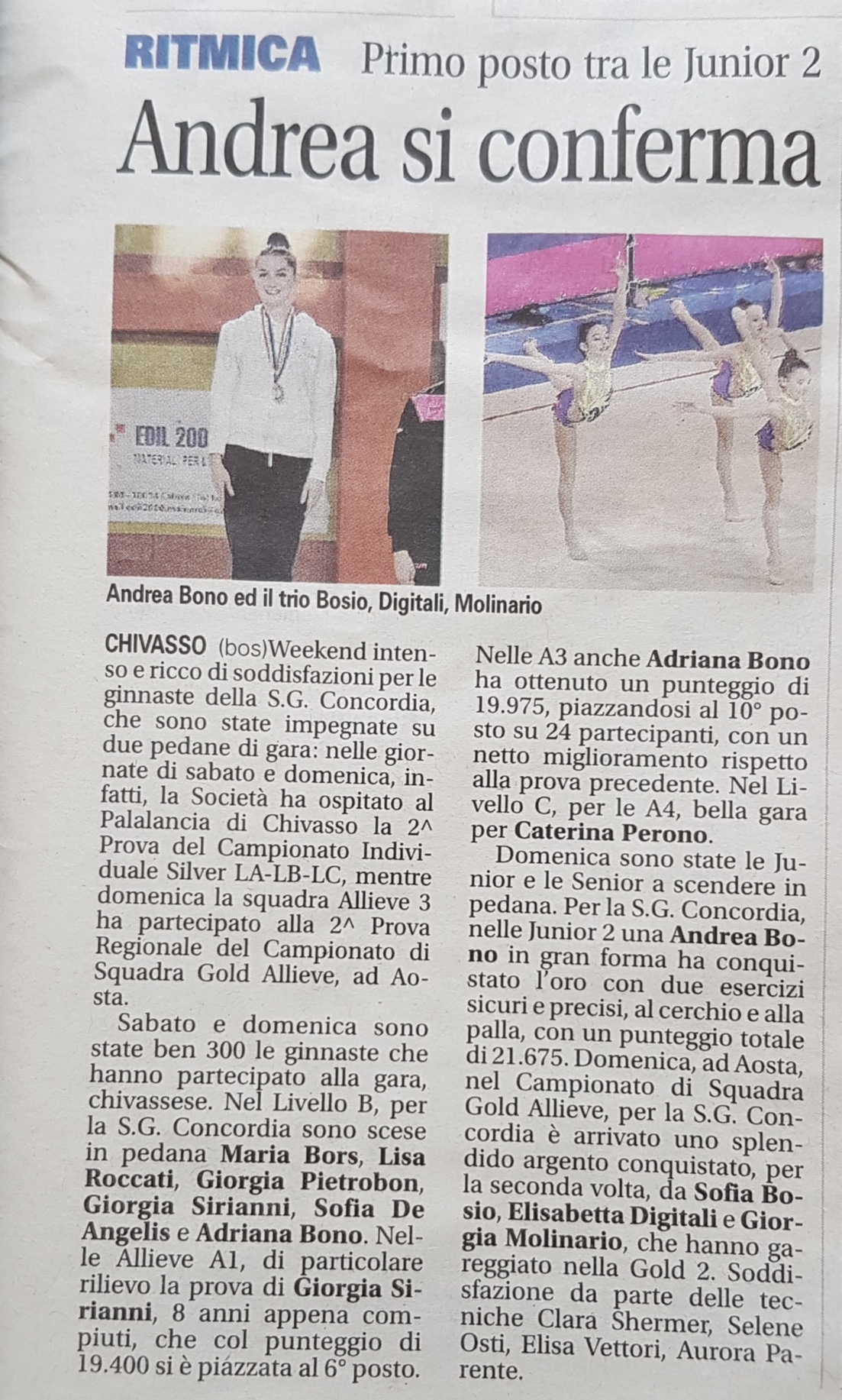 E' stato un lungo weekend di gare per la S.G. Concordia, ancora una volta ricco di soddisfazioni. A Chivasso, al Palalancia, sabato e domenica scorsi abbiamo ospitato la 2^ Prova del Campionato Individuale Silver LA-LB-LC, con ben 300 ginnaste in gara nei due giorni . Nel Livello B, sono scese in pedana le nostre Giorgia Pietrobon, Maria Bors, Lisa Roccati, Giorgia Sirianni, Sofia De Angelis e Adriana Bono. Tutte le giovanissime ginnaste, che sono soltanto alla loro seconda gara del calendario federale, hanno dato prova di aver lavorato
