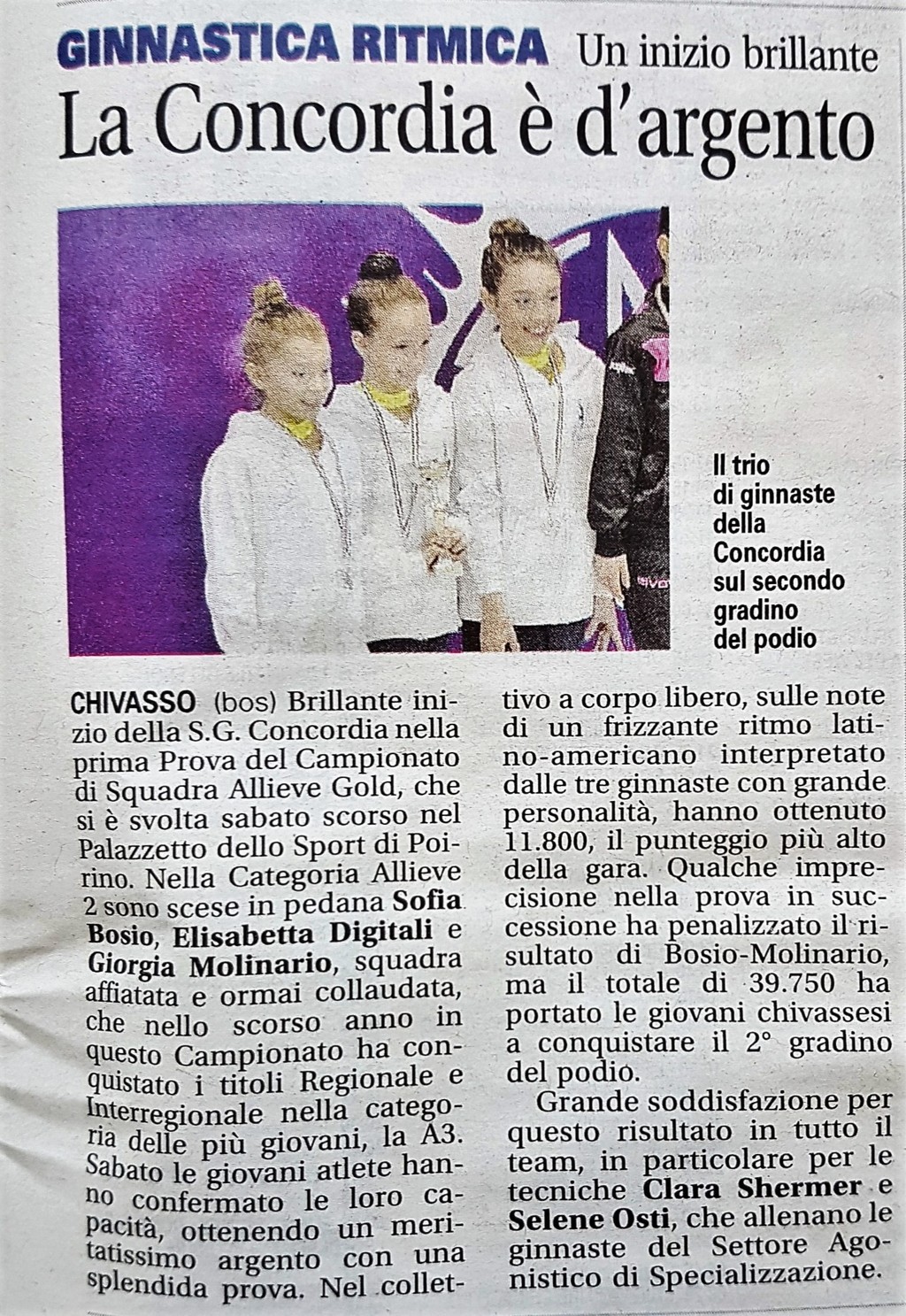 C'è una fotografia, tra le tante scattate sabato scorso nella 1^ Prova del Campionato di Squadra Allieve Gold, che meglio di ogni altra rappresenta lo spirito di questa squadra. Le protagoniste ci sono tutte: Elisabetta Digitali, sorridente e decisa, sta entrando in pedana per l'ultimo esercizio della rotazione, l'individuale alla fune, accompagnata dallo sguardo attento e partecipe delle due allenatrici, Clara Shermer e Selene Osti, mentre le compagne Giorgia Molinario e Sofia Bosio, che hanno terminato i loro esercizi, sedute sul divanetto del "kiss & cry", la guardano e gridano