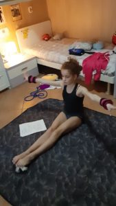 “Le insegnanti ci mandano tutti i giorni una scheda con gli esercizi da fare, ed io cerco di fare del mio meglio per non perdere la scioltezza e i muscoli.”