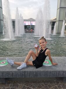Cecilia ha fatto l’”en plein”, conquistando ben 3 titoli Nazionali: Campionessa Italiana Assoluta LC J2, Campionessa Italiana alla palla e Campionessa Italiana al cerchio.