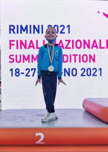 Anche per Sabrina tre podi: Vice-Campionessa Italiana Assoluta LC J1, e ancora un doppio titolo di specialità: Campionessa Italiana alla palla e Campionessa Italiana alle clavette.