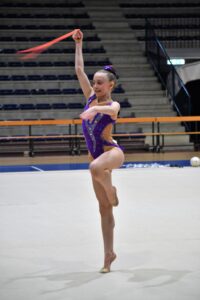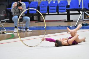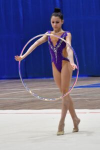 Sofia ha iniziato con una buona prova alla fune, ma ha dato il meglio di sé nell’esercizio al cerchio, eseguito con grande sicurezza e precisione, premiato da un 11.350, il punteggio più alto raggiunto nella gara della sua categoria.