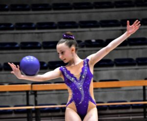Anche per Angelica l’inizio è stato con la fune, con un esercizio sicuro e convincente, che l’ha collocata al 2° posto in questo attrezzo. Ha proseguito con la palla, eseguita con grande eleganza, ma con una perdita che le è costata qualche punto.