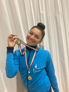 Primo posto assoluto anche per Sofia Crovella, LA2 Senior1, 1^ classificata nella specialità clavette e 2^ nel cerchio.