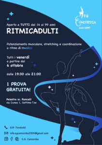 Che cos’è? E’ un corso di ginnastica ritmica dedicato a chi ha più di 16 anni, e vuole muoversi, divertirsi, tenersi in forma.