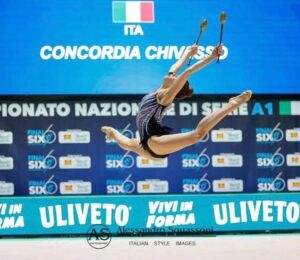 Le clavette sono affidate a Matilde, ginnasta dell’Udinese in prestito alla Concordia per questo Campionato: con il suo 24.033 segna il punteggio più alto per la squadra.