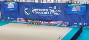 La nostra squadra, che era una delle squadre più giovani di tutta la competizione, ha gareggiato nella categoria Allieve (classe 2012-2017), con 54 squadre in gara, affrontando il confronto con team formati da ginnaste più “anziane” e più esperte, presentando l’esercizio alle 5 palle, attrezzo obbligatorio per la loro categoria.