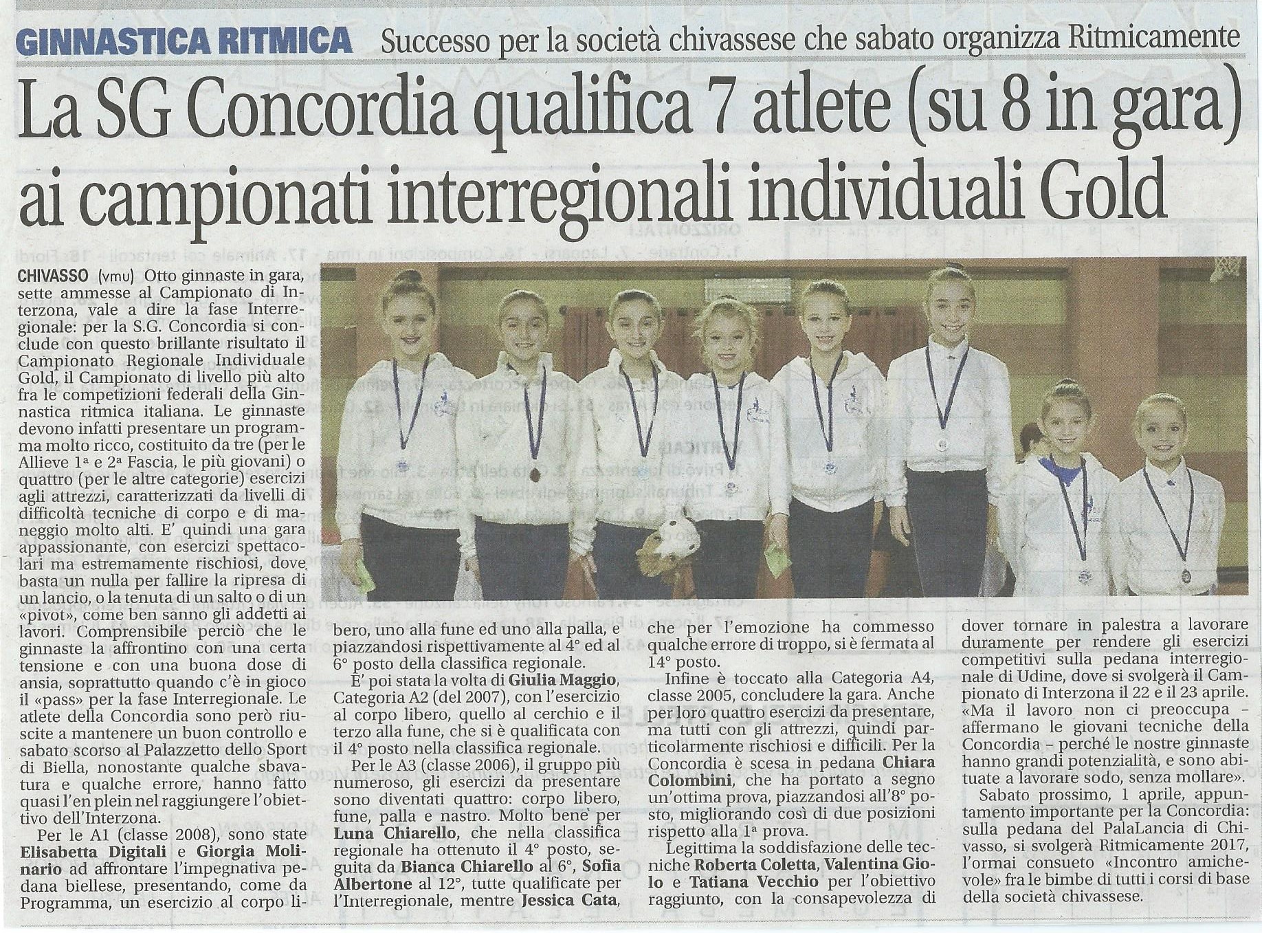 Grande giornata quella di sabato 25 marzo a Biella, con la conquista di un altro Interregionale! Le nostre “Magnifiche Otto“ sono scese in pedana nella 2^ Prova del Campionato Individuale Gold, quello che fino all’anno scorso si chiamava “Campionato di Categoria”. Cambia il nome, ma restano l’importanza, la difficoltà, l’emozione. Tanta  emozione, nelle ginnaste, soprattutto in quelle che  hanno affrontato per la prima volta questa competizione. E’ toccato alle più piccole, le A1, aprire le danze: Elisabetta Digitali, ha iniziato la rotazione con l’attrezzo più difficile, la fune, per