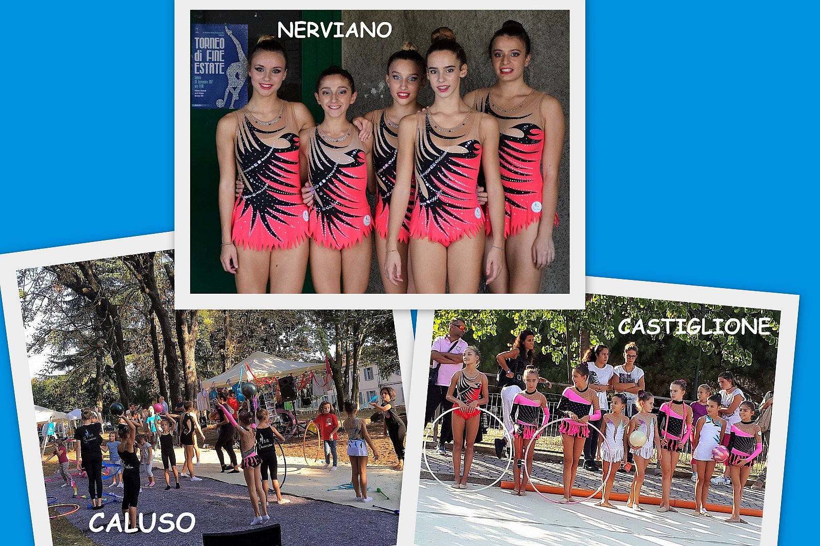 In questo primo weekend autunnale, le nostre Concordine sono state impegnate sia in gara che nelle manifestazioni dedicate alla promozione delle attività sportive sul territorio. Sabato scorso, a Nerviano, la squadra che parteciperà al Campionato di Serie B della Federazione Ginnastica d'Italia, è scesa in pedana nel Torneo di Fine Estate, competizione interregionale in preparazione dei Campionati federali. Sulla pedana lombarda, sono stati "testati" gli esercizi che, da sabato prossimo, saranno presentati nei tre appuntamenti del Campionato di Serie B. Abbiamo visto il corpo libero di Bianca Chiarello, la fune e le clavette di