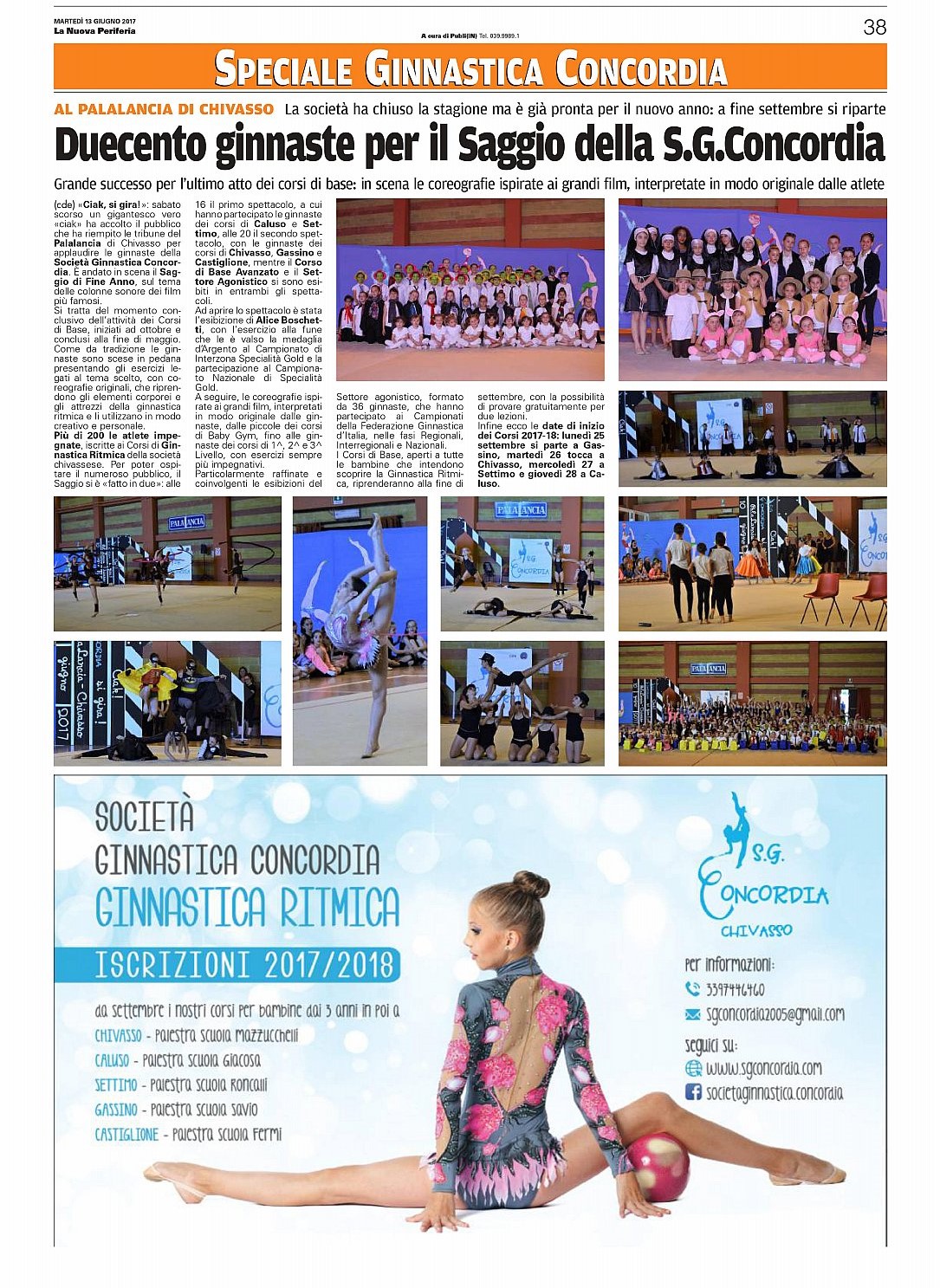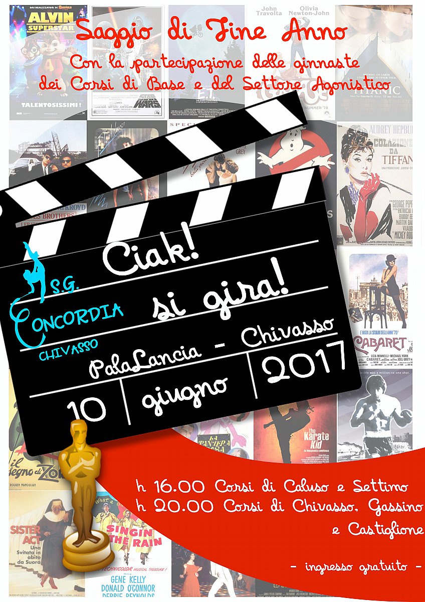 Ci stiamo avvicinando al Gran Finale! Sabato prossimo, 10 giugno, al Palalancia di Chivasso, vi aspettano le nostre ginnaste dei Corsi e del Settore Agonistico per salutarvi con la Ritmica, sulle note delle colonne sonore più belle dei grandi film di tutti i tempi! Due spettacoli, perché il Palalancia è grande, ma non abbastanza da ospitare tutte insieme le Concordine ed il loro pubblico! Quindi, ci "faremo in due", e potrete applaudire le nostre ginnaste allo spettacolo delle 16.00 ( Corsi di Base di Caluso, Corsi di Base di Settimo e Settore