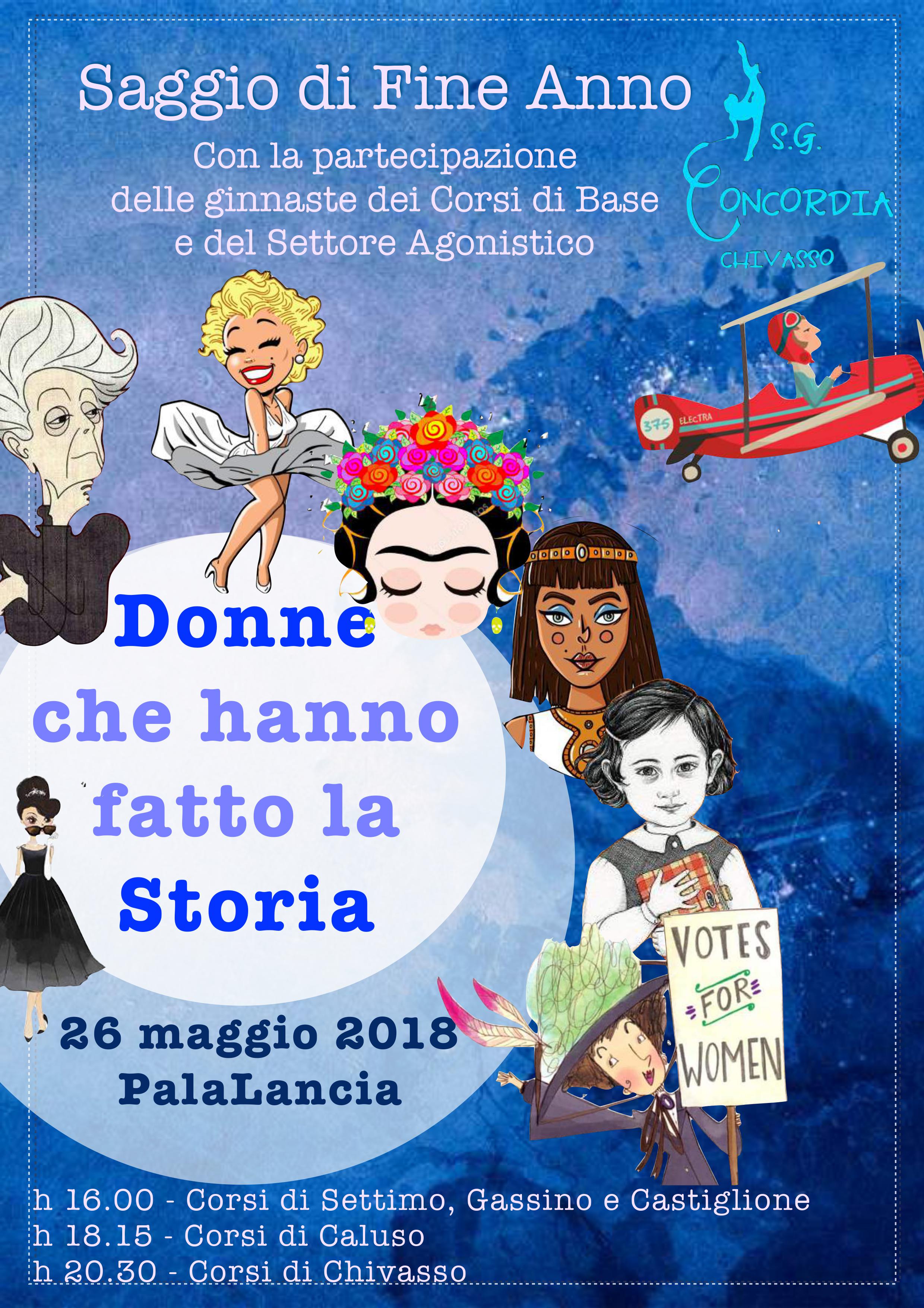 I messaggi importanti si possono trasmettere in tanti modi. La Ginnastica Ritmica utilizza il corpo per esprimersi, e con questo comunica, emoziona, commuove, E' quello che è successo sabato scorso, nel Saggio di Fine Anno della nostra Società. Quest'anno è stato scelto un tema importante, si è scelto di rappresentare le Donne che hanno lasciato un segno importante nella Storia, che hanno aperto la via a chi è venuta dopo di loro, che si sono distinte per coraggio, intelligenza, personalità. Ed ecco che sulla pedana del Palalancia si sono susseguiti